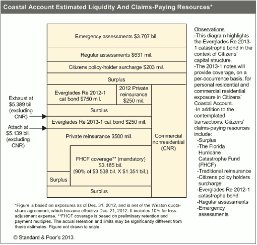 Everglades Re 2013 seeks to secure another layer of reinsurance protection to Citizens from the capital markets. The transaction will provide Citizens with a source of collateralized reinsurance capacity for hurricanes on a per-occurrence basis using an indemnity trigger over a three year risk period.
