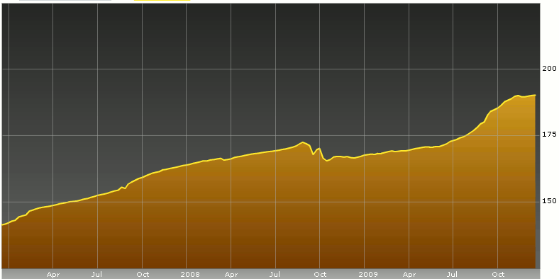 It’s time for a final look (for 2009) at the Swiss Re cat bond indices. Both indices have shown an amazing recovery from the low points of this time last year and that growth has continued although with slight retreats due to the volume of deals and notes available in the marketplace after a busy last half of the year.